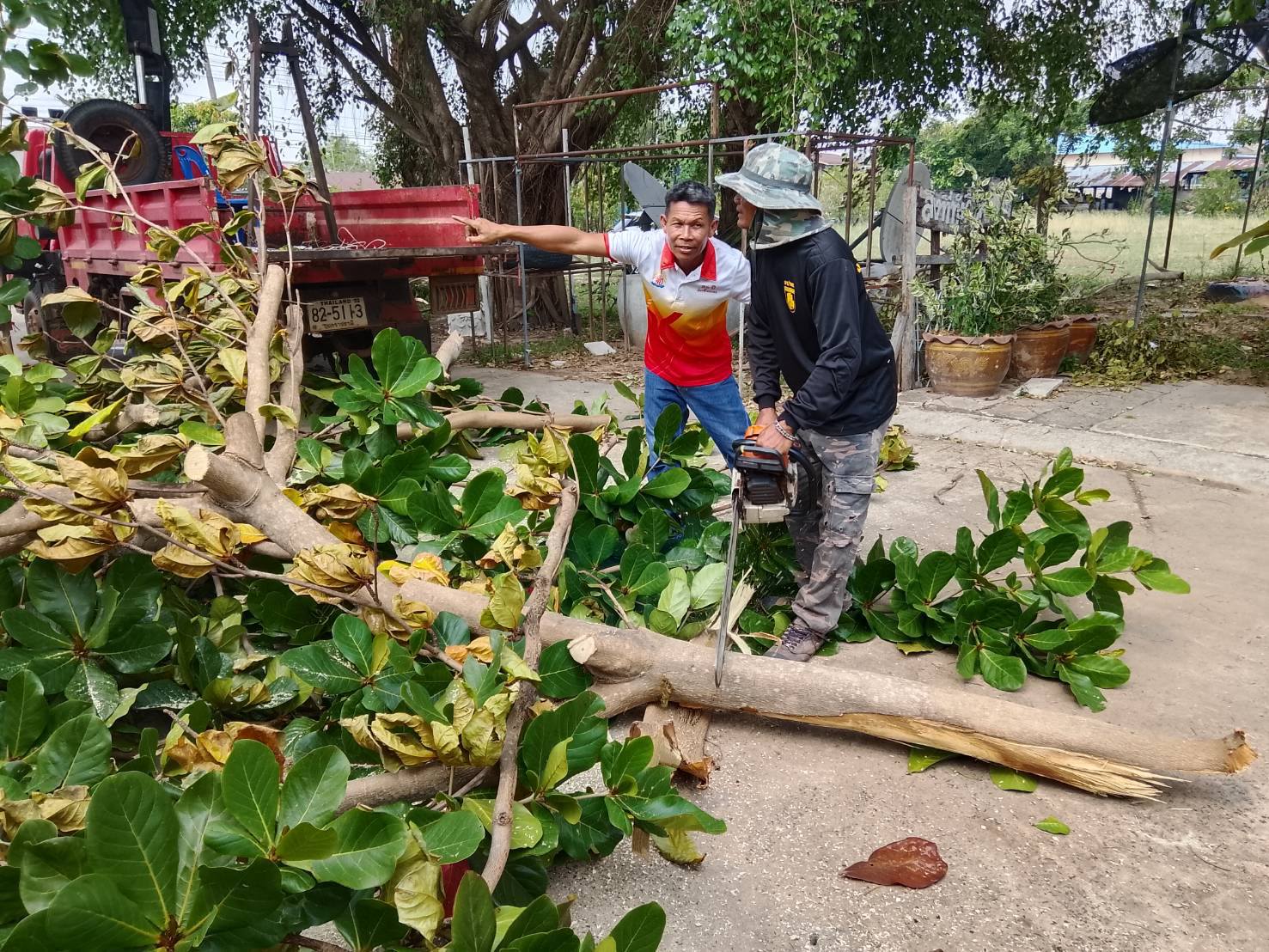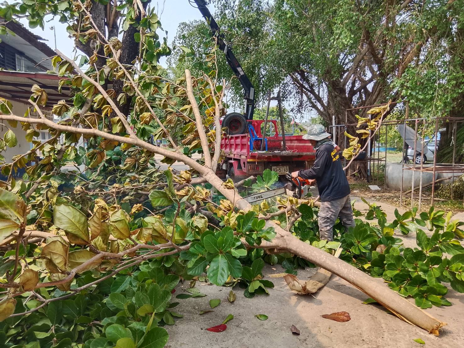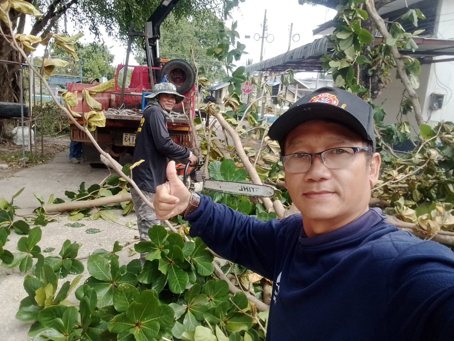 ดำเนินการตัดต้นไม้ตามคำขอความอนุเคราะห์ในโรงเรียนบ้านอุดมสุข ตำบลกุดประทาย อำเภอเดชอุดม จังหวัดอุบลราชธานี