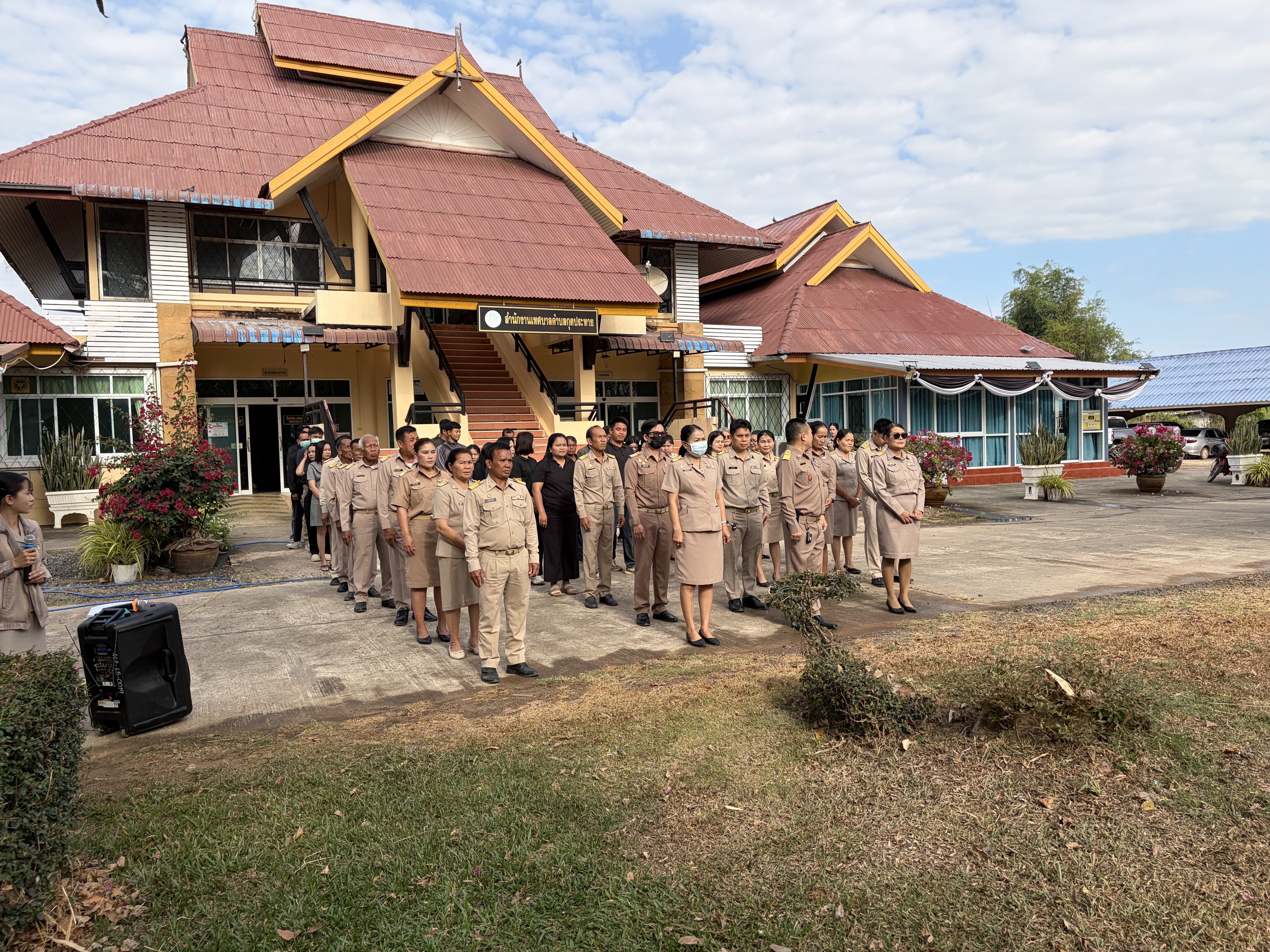 วันจันทร์ที่ 2 กุมภาพันธ์ พ.ศ.2569 เวลา 08:30 น. #เทศบาลตำบลกุดประทาย โดย นายทองแดง ชาแฉะ เลขานุการนายกเทศมนตรีตำบลกุดประทาย พร้อมด้วย คณะผู้บริหาร สมาชิกสภาเทศบาล หัวหน้าส่วนราชการ และ พนักงาน ได้เข้าร่วมกิจกรรมเข้าแถวเคารพธงชาติ สวดมนต์ไหว้พระ ทุกวันจันทร์แรกของเดือน ณ บริเวณหน้าเสาธง เทศบาลตำบลกุดประทาย