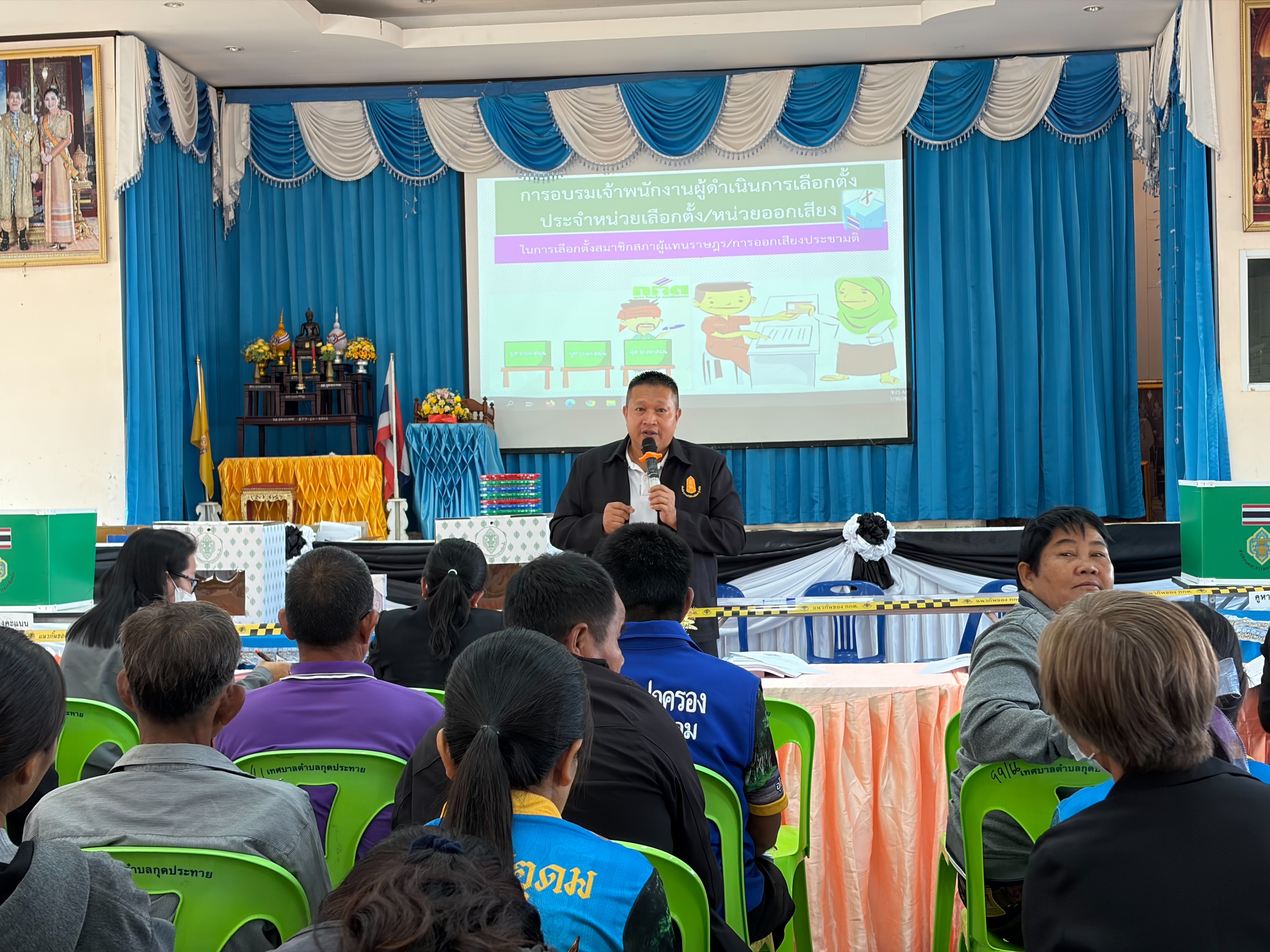 วันที่ 29 - 30 มกราคม พ.ศ.2569 #เทศบาลตำบลกุดประทาย โดย นายวิทยา สำเภา นายกเทศมนตรีตำบลกุดประทาย ได้ให้ความอนุเคราะห์สถานที่การอบรมเจ้าพนักงานผู้ดำเนินการเลือกตั้งประจำหน่วยเลือกตั้ง/หน่วยออกเสียง ในการเลือกตั้งสมาชิกสภาผู้แทนราษฎร/การออกเสียงประชามติ ณ อาคารหอประชุมเทศบาลตำบลกุดประทาย อำเภอเดชอุดม จังหวัดอุบลราชธานี