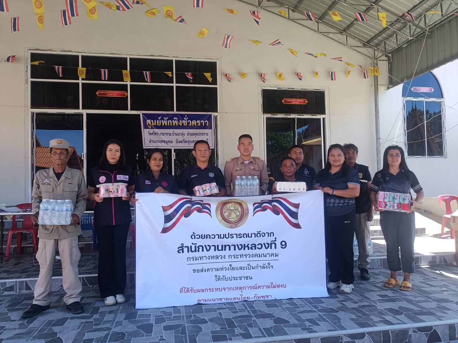 วันที่ 19 ธันวาคม พ.ศ.2568 ณ ศูนย์พักพิงผู้อพยพวัดแสนสุข #เทศบาลตำบลกุดประทาย นำโดย นายวิทยา สำเภา นายกเทศมนตรีตำบลกุดประทาย ขอขอบคุณ "มูลนิธิยังมีเรา ร่วมกับ สถานีข่าว Top news" ที่นำสิ่งของมามอบให้กับประชาชนในศูนย์พักพิง ของเทศบาลตำบลกุดประทาย เพื่อช่วยเหลือผู้ที่เดือดร้อน และได้รับผลกระทบจากเหตุการณ์ปะทะตามแนวชายแดนไทย - กัมพูชา