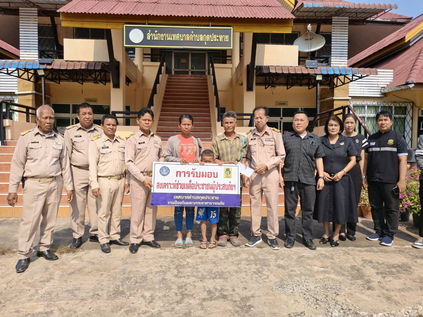 เทศบาลตำบลกุดประทาย มอบเงินช่วยเหลือผู้ประสบอัคคีภัย นายพิทักษ์ บุญศรัทธา เทศบาลตำบลกุดประทาย อำเภอเดชอุดม จังหวัดอุบลราชธานี